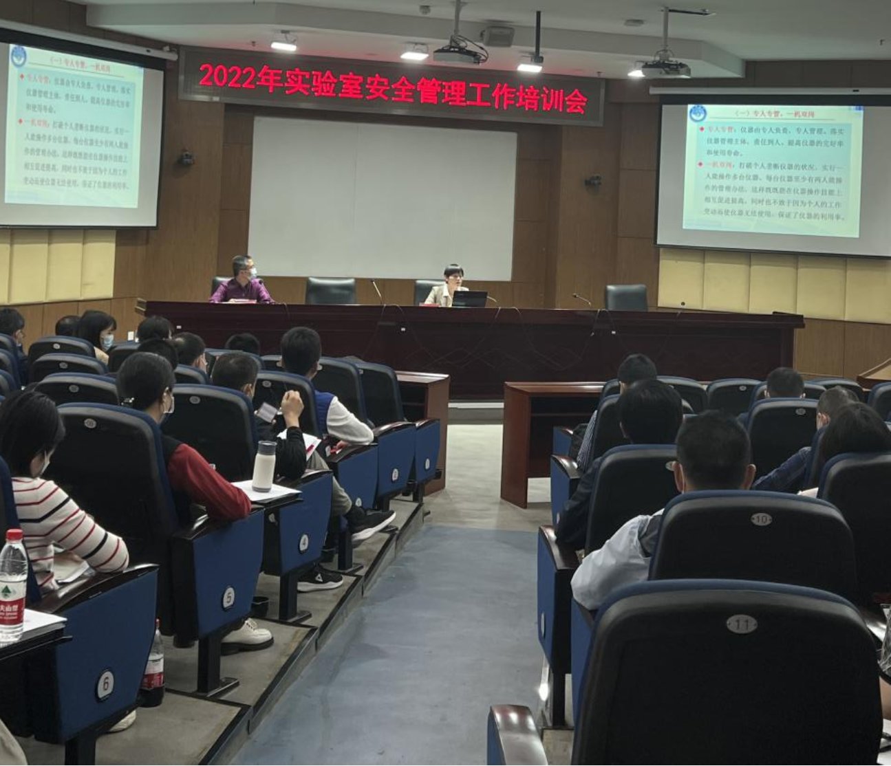 我中心副主任郭岚与相关同志徐鹏、鄢爱平、俞勇参加了此次会议,学习了最新版实验室安全管理细则、实验室安全检查的步骤、方法和注意事项。通过本次会议,我们对实验室安全管理工作的重要性有了更深刻的理解,接下来将根据会议精神,进一步提高政治站位,严格按照实验室安全管理的要求,部署和开展我中心实验室安全自查自纠工作,全面把握中心安全工作的短板和不足,建立安全隐患台账并及时整改,对所有隐患整改做到闭环管理,迎接上级部门的实验室安全现场检查。