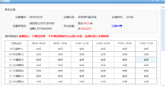 如不知道选择哪台设备,请咨询相关仪器检测老师或者业务办公室(0791-88304414),再进行预约。请注意此台仪器为时段预约还是排号预约。